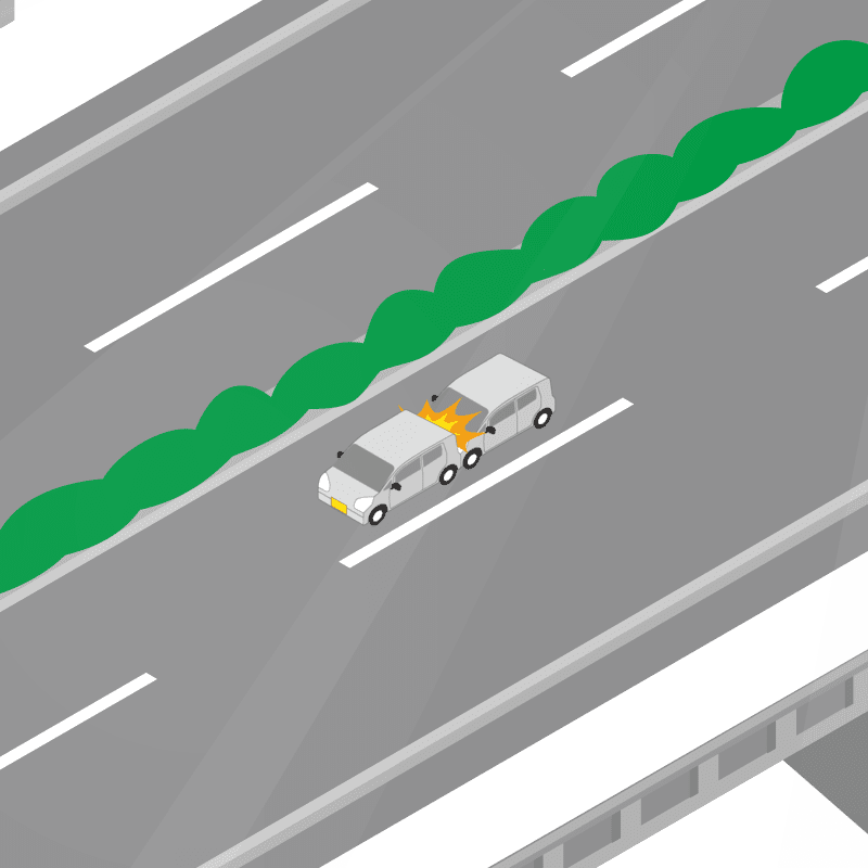 ・イラストに使用している各要素(車、背景、車、天候、信号、衝突地点など)は、代表的なイメージをイラスト化しており、色や形状等含め現実の事故の状況とは異なります。あくまで、事故のイメージとして参考までにご活用ください。