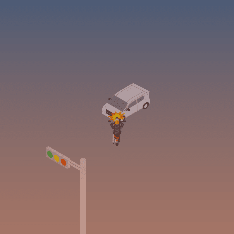 ・イラストに使用している各要素(車、背景、車、天候、信号、衝突地点など)は、代表的なイメージをイラスト化しており、色や形状等含め現実の事故の状況とは異なります。あくまで、事故のイメージとして参考までにご活用ください。