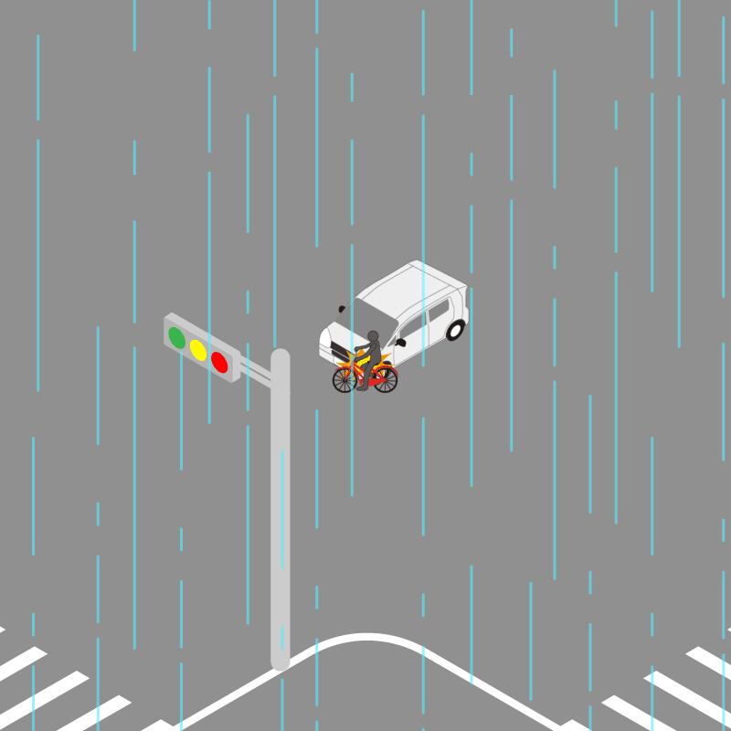 ・イラストに使用している各要素(車、背景、車、天候、信号、衝突地点など)は、代表的なイメージをイラスト化しており、色や形状等含め現実の事故の状況とは異なります。あくまで、事故のイメージとして参考までにご活用ください。