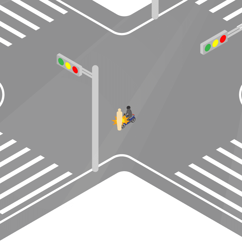 ・イラストに使用している各要素(車、背景、車、天候、信号、衝突地点など)は、代表的なイメージをイラスト化しており、色や形状等含め現実の事故の状況とは異なります。あくまで、事故のイメージとして参考までにご活用ください。