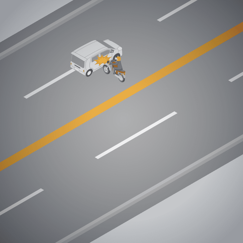 ・イラストに使用している各要素(車、背景、車、天候、信号、衝突地点など)は、代表的なイメージをイラスト化しており、色や形状等含め現実の事故の状況とは異なります。あくまで、事故のイメージとして参考までにご活用ください。