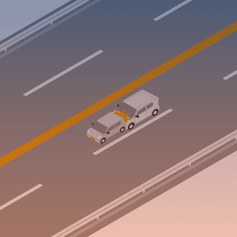 ・イラストに使用している各要素(車、背景、車、天候、信号、衝突地点など)は、代表的なイメージをイラスト化しており、色や形状等含め現実の事故の状況とは異なります。あくまで、事故のイメージとして参考までにご活用ください。