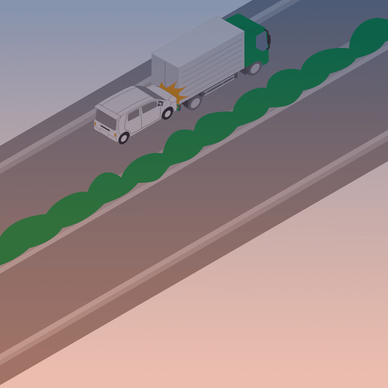 ・イラストに使用している各要素(車、背景、車、天候、信号、衝突地点など)は、代表的なイメージをイラスト化しており、色や形状等含め現実の事故の状況とは異なります。あくまで、事故のイメージとして参考までにご活用ください。