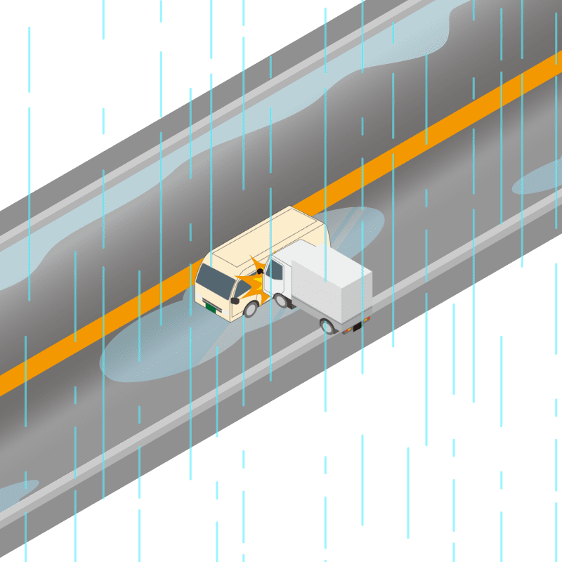 ・イラストに使用している各要素(車、背景、車、天候、信号、衝突地点など)は、代表的なイメージをイラスト化しており、色や形状等含め現実の事故の状況とは異なります。あくまで、事故のイメージとして参考までにご活用ください。