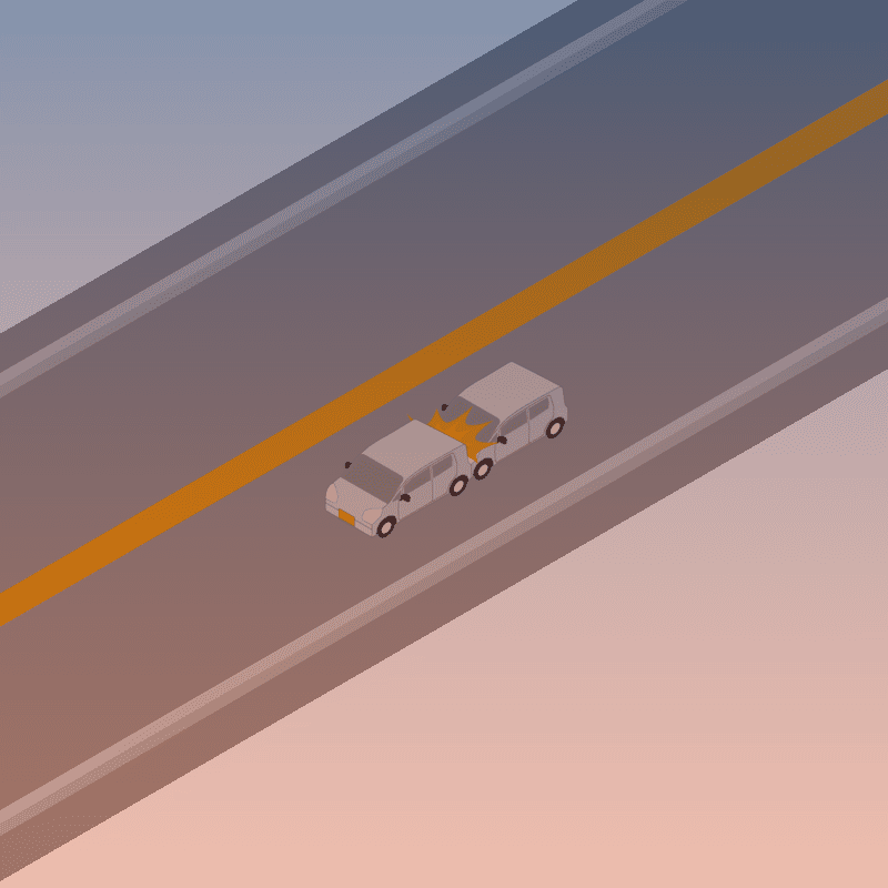 ・イラストに使用している各要素(車、背景、車、天候、信号、衝突地点など)は、代表的なイメージをイラスト化しており、色や形状等含め現実の事故の状況とは異なります。あくまで、事故のイメージとして参考までにご活用ください。