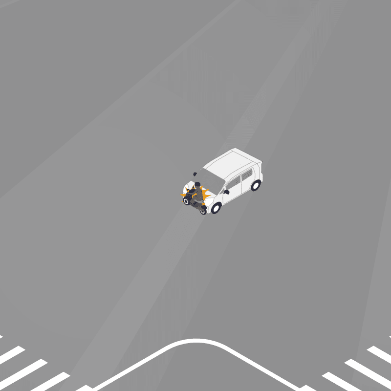 ・イラストに使用している各要素(車、背景、車、天候、信号、衝突地点など)は、代表的なイメージをイラスト化しており、色や形状等含め現実の事故の状況とは異なります。あくまで、事故のイメージとして参考までにご活用ください。