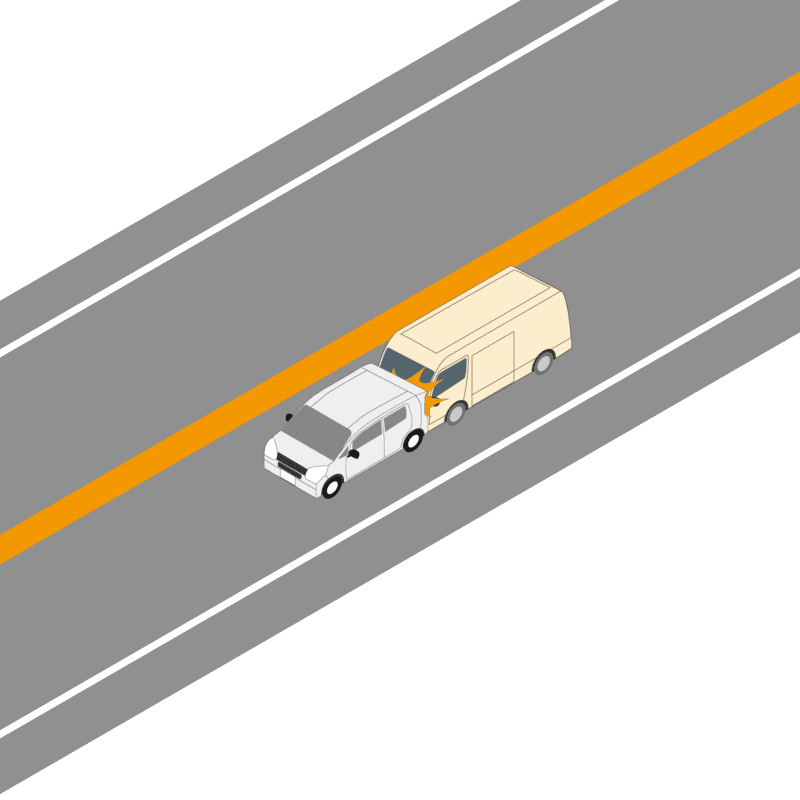 ・イラストに使用している各要素(車、背景、車、天候、信号、衝突地点など)は、代表的なイメージをイラスト化しており、色や形状等含め現実の事故の状況とは異なります。あくまで、事故のイメージとして参考までにご活用ください。