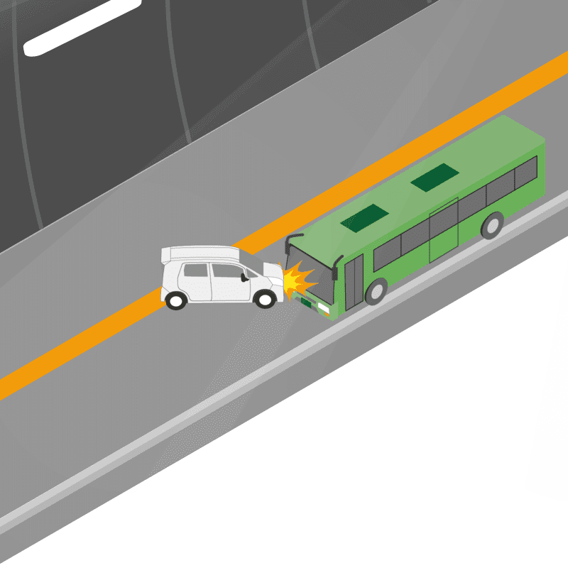 ・イラストに使用している各要素(車、背景、車、天候、信号、衝突地点など)は、代表的なイメージをイラスト化しており、色や形状等含め現実の事故の状況とは異なります。あくまで、事故のイメージとして参考までにご活用ください。