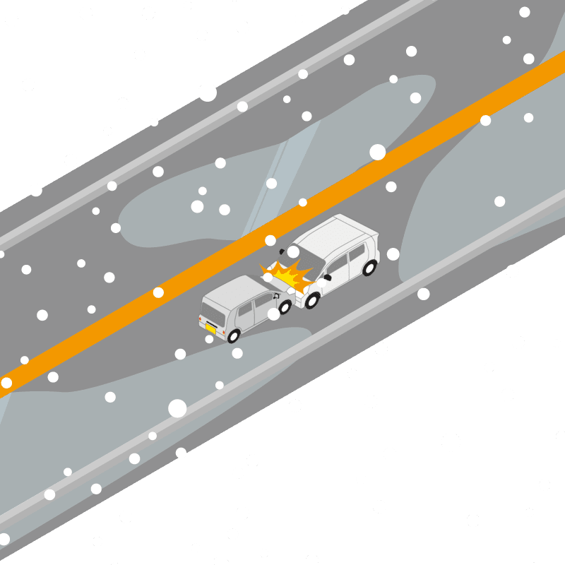 ・イラストに使用している各要素(車、背景、車、天候、信号、衝突地点など)は、代表的なイメージをイラスト化しており、色や形状等含め現実の事故の状況とは異なります。あくまで、事故のイメージとして参考までにご活用ください。