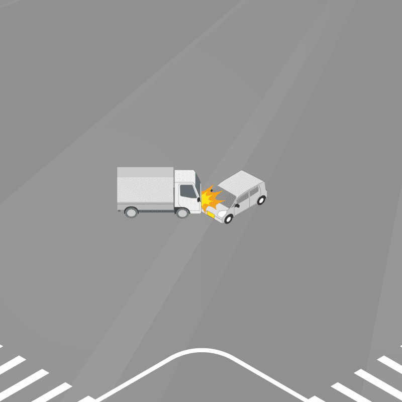 ・イラストに使用している各要素(車、背景、車、天候、信号、衝突地点など)は、代表的なイメージをイラスト化しており、色や形状等含め現実の事故の状況とは異なります。あくまで、事故のイメージとして参考までにご活用ください。