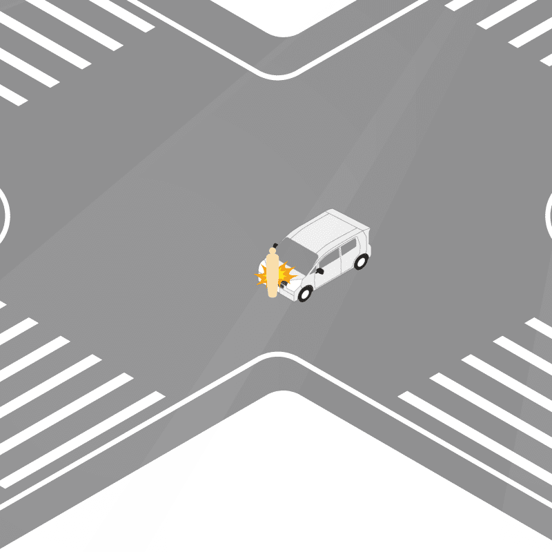 ・イラストに使用している各要素(車、背景、車、天候、信号、衝突地点など)は、代表的なイメージをイラスト化しており、色や形状等含め現実の事故の状況とは異なります。あくまで、事故のイメージとして参考までにご活用ください。