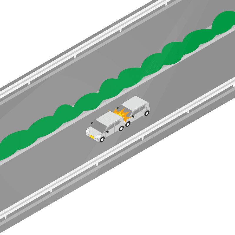 ・イラストに使用している各要素(車、背景、車、天候、信号、衝突地点など)は、代表的なイメージをイラスト化しており、色や形状等含め現実の事故の状況とは異なります。あくまで、事故のイメージとして参考までにご活用ください。
