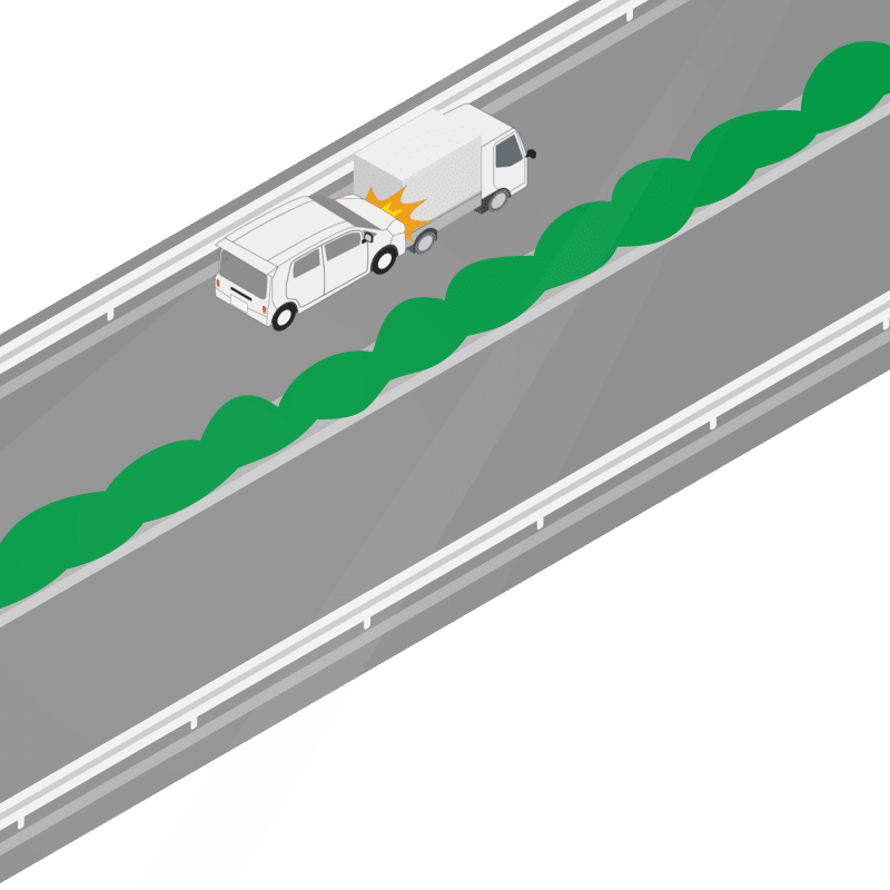 ・イラストに使用している各要素(車、背景、車、天候、信号、衝突地点など)は、代表的なイメージをイラスト化しており、色や形状等含め現実の事故の状況とは異なります。あくまで、事故のイメージとして参考までにご活用ください。