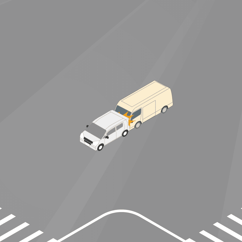 ・イラストに使用している各要素(車、背景、車、天候、信号、衝突地点など)は、代表的なイメージをイラスト化しており、色や形状等含め現実の事故の状況とは異なります。あくまで、事故のイメージとして参考までにご活用ください。