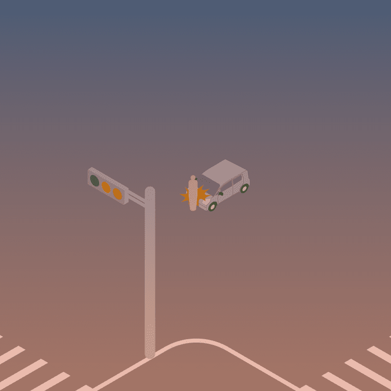 ・イラストに使用している各要素(車、背景、車、天候、信号、衝突地点など)は、代表的なイメージをイラスト化しており、色や形状等含め現実の事故の状況とは異なります。あくまで、事故のイメージとして参考までにご活用ください。