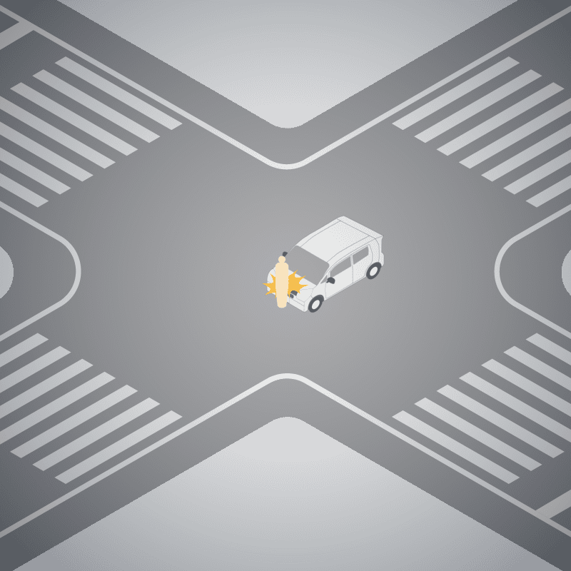 ・イラストに使用している各要素(車、背景、車、天候、信号、衝突地点など)は、代表的なイメージをイラスト化しており、色や形状等含め現実の事故の状況とは異なります。あくまで、事故のイメージとして参考までにご活用ください。