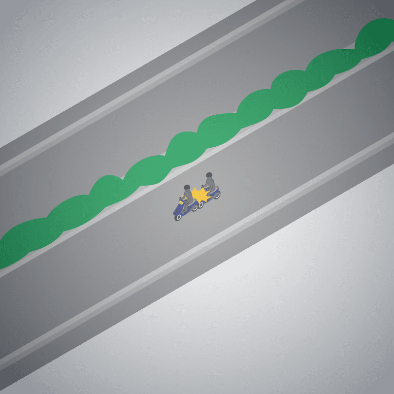 ・イラストに使用している各要素(車、背景、車、天候、信号、衝突地点など)は、代表的なイメージをイラスト化しており、色や形状等含め現実の事故の状況とは異なります。あくまで、事故のイメージとして参考までにご活用ください。