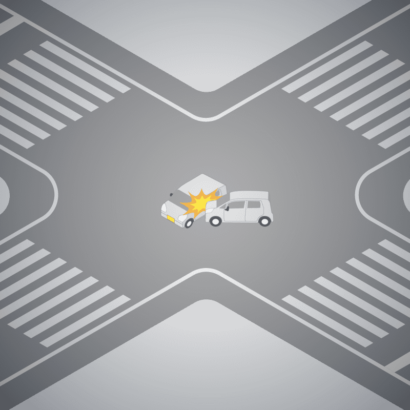 ・イラストに使用している各要素(車、背景、車、天候、信号、衝突地点など)は、代表的なイメージをイラスト化しており、色や形状等含め現実の事故の状況とは異なります。あくまで、事故のイメージとして参考までにご活用ください。