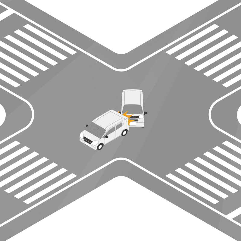 ・イラストに使用している各要素(車、背景、車、天候、信号、衝突地点など)は、代表的なイメージをイラスト化しており、色や形状等含め現実の事故の状況とは異なります。あくまで、事故のイメージとして参考までにご活用ください。