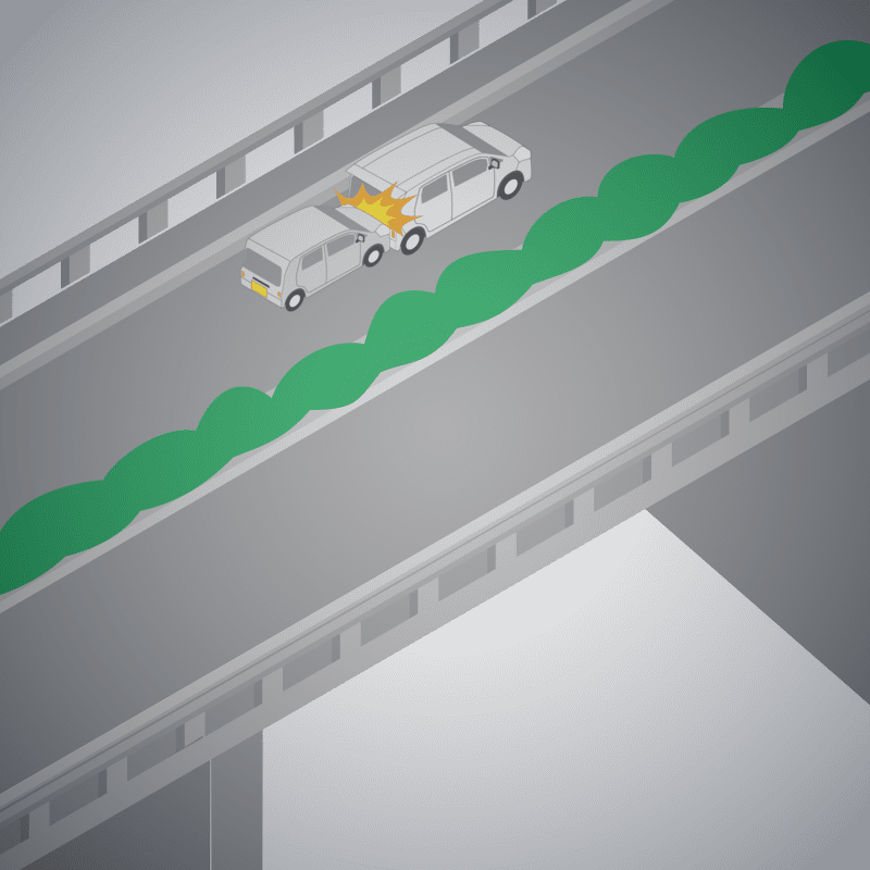 ・イラストに使用している各要素(車、背景、車、天候、信号、衝突地点など)は、代表的なイメージをイラスト化しており、色や形状等含め現実の事故の状況とは異なります。あくまで、事故のイメージとして参考までにご活用ください。