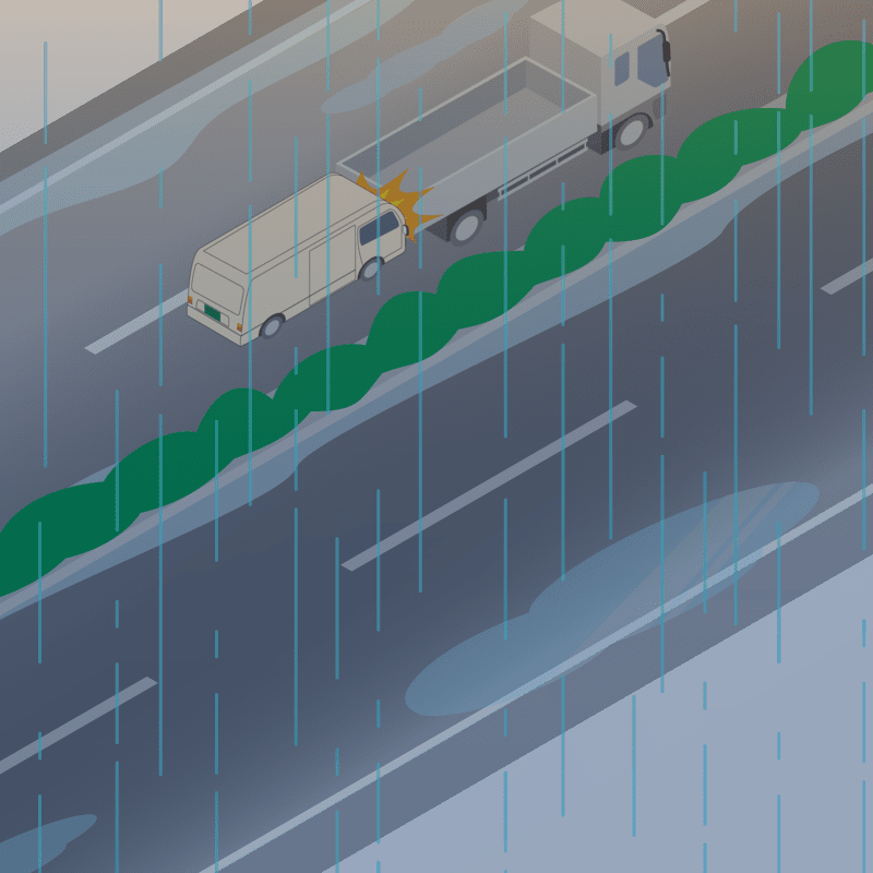・イラストに使用している各要素(車、背景、車、天候、信号、衝突地点など)は、代表的なイメージをイラスト化しており、色や形状等含め現実の事故の状況とは異なります。あくまで、事故のイメージとして参考までにご活用ください。