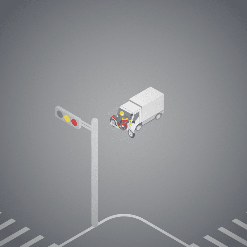 ・イラストに使用している各要素(車、背景、車、天候、信号、衝突地点など)は、代表的なイメージをイラスト化しており、色や形状等含め現実の事故の状況とは異なります。あくまで、事故のイメージとして参考までにご活用ください。