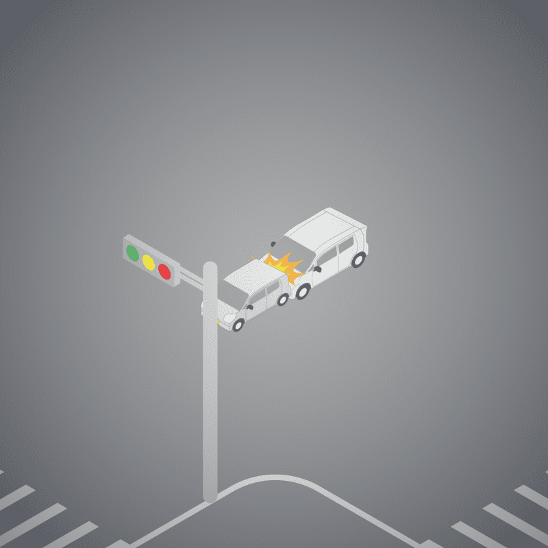 ・イラストに使用している各要素(車、背景、車、天候、信号、衝突地点など)は、代表的なイメージをイラスト化しており、色や形状等含め現実の事故の状況とは異なります。あくまで、事故のイメージとして参考までにご活用ください。