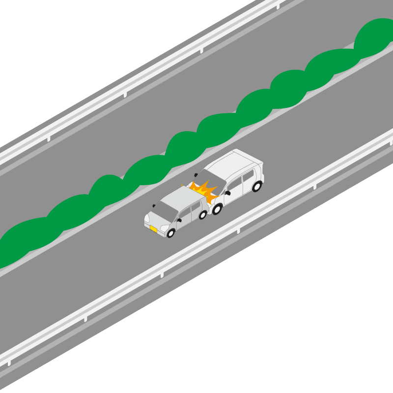 ・イラストに使用している各要素(車、背景、車、天候、信号、衝突地点など)は、代表的なイメージをイラスト化しており、色や形状等含め現実の事故の状況とは異なります。あくまで、事故のイメージとして参考までにご活用ください。