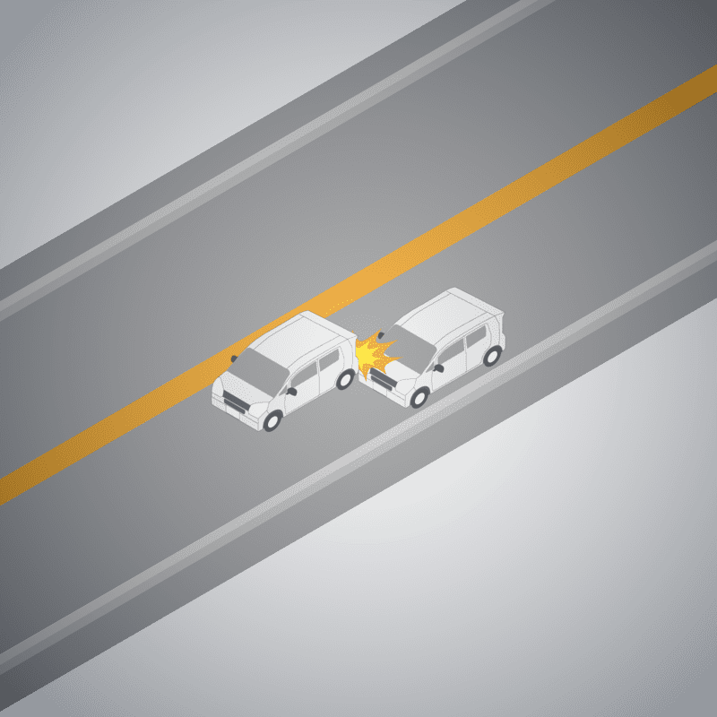 ・イラストに使用している各要素(車、背景、車、天候、信号、衝突地点など)は、代表的なイメージをイラスト化しており、色や形状等含め現実の事故の状況とは異なります。あくまで、事故のイメージとして参考までにご活用ください。