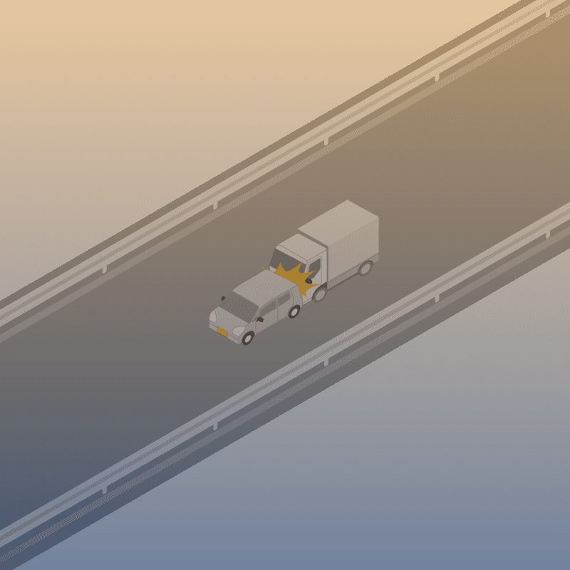 ・イラストに使用している各要素(車、背景、車、天候、信号、衝突地点など)は、代表的なイメージをイラスト化しており、色や形状等含め現実の事故の状況とは異なります。あくまで、事故のイメージとして参考までにご活用ください。