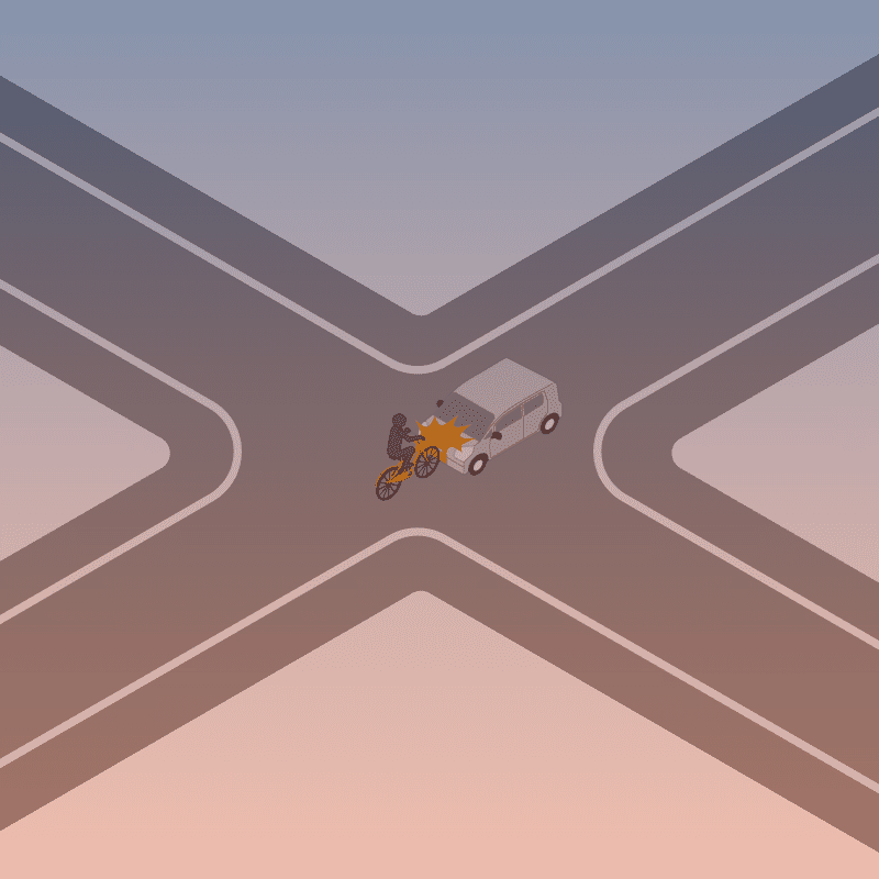 ・イラストに使用している各要素(車、背景、車、天候、信号、衝突地点など)は、代表的なイメージをイラスト化しており、色や形状等含め現実の事故の状況とは異なります。あくまで、事故のイメージとして参考までにご活用ください。