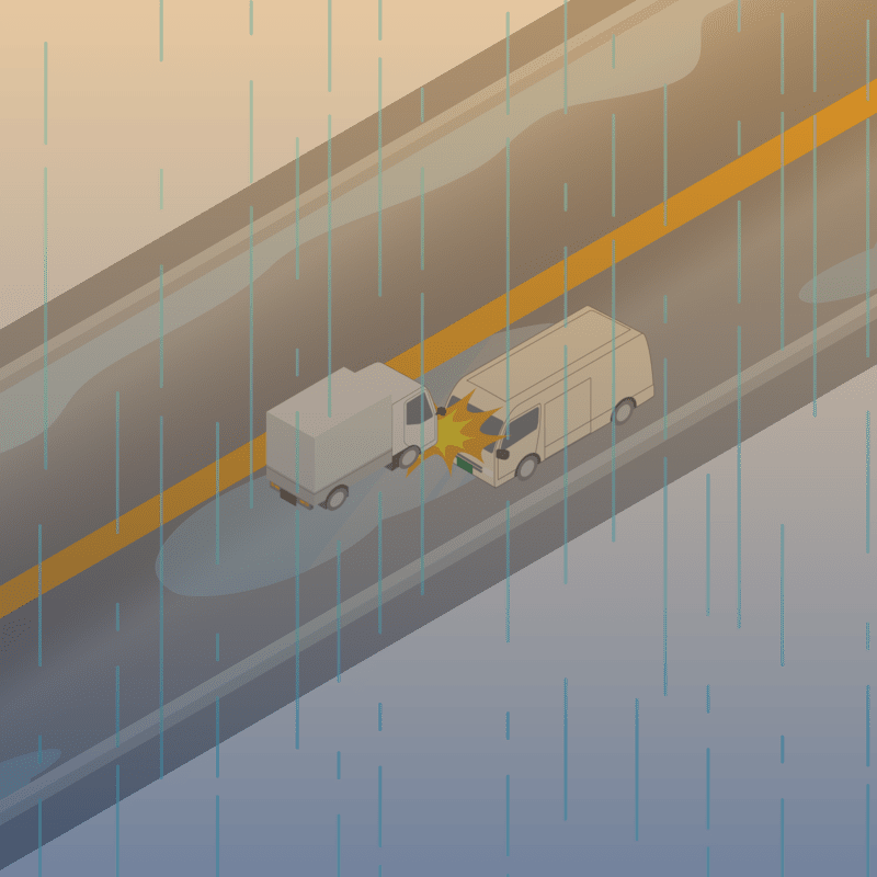 ・イラストに使用している各要素(車、背景、車、天候、信号、衝突地点など)は、代表的なイメージをイラスト化しており、色や形状等含め現実の事故の状況とは異なります。あくまで、事故のイメージとして参考までにご活用ください。