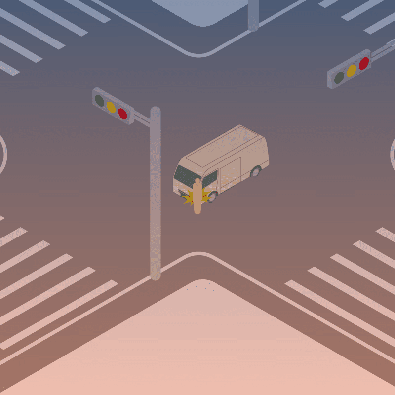 ・イラストに使用している各要素(車、背景、車、天候、信号、衝突地点など)は、代表的なイメージをイラスト化しており、色や形状等含め現実の事故の状況とは異なります。あくまで、事故のイメージとして参考までにご活用ください。