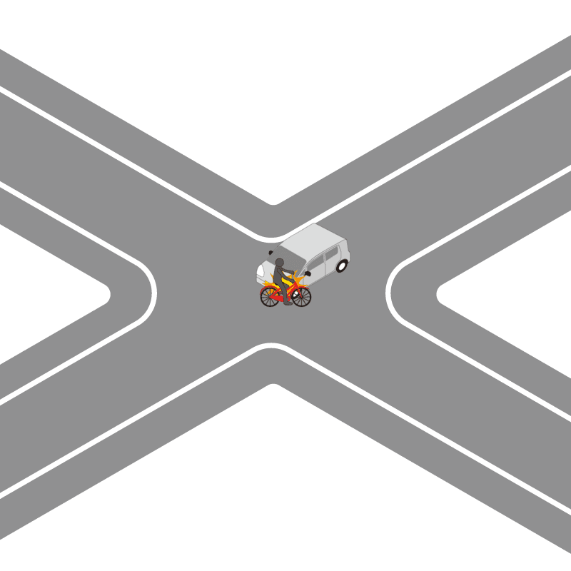 ・イラストに使用している各要素(車、背景、車、天候、信号、衝突地点など)は、代表的なイメージをイラスト化しており、色や形状等含め現実の事故の状況とは異なります。あくまで、事故のイメージとして参考までにご活用ください。