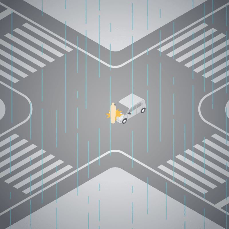 ・イラストに使用している各要素(車、背景、車、天候、信号、衝突地点など)は、代表的なイメージをイラスト化しており、色や形状等含め現実の事故の状況とは異なります。あくまで、事故のイメージとして参考までにご活用ください。
