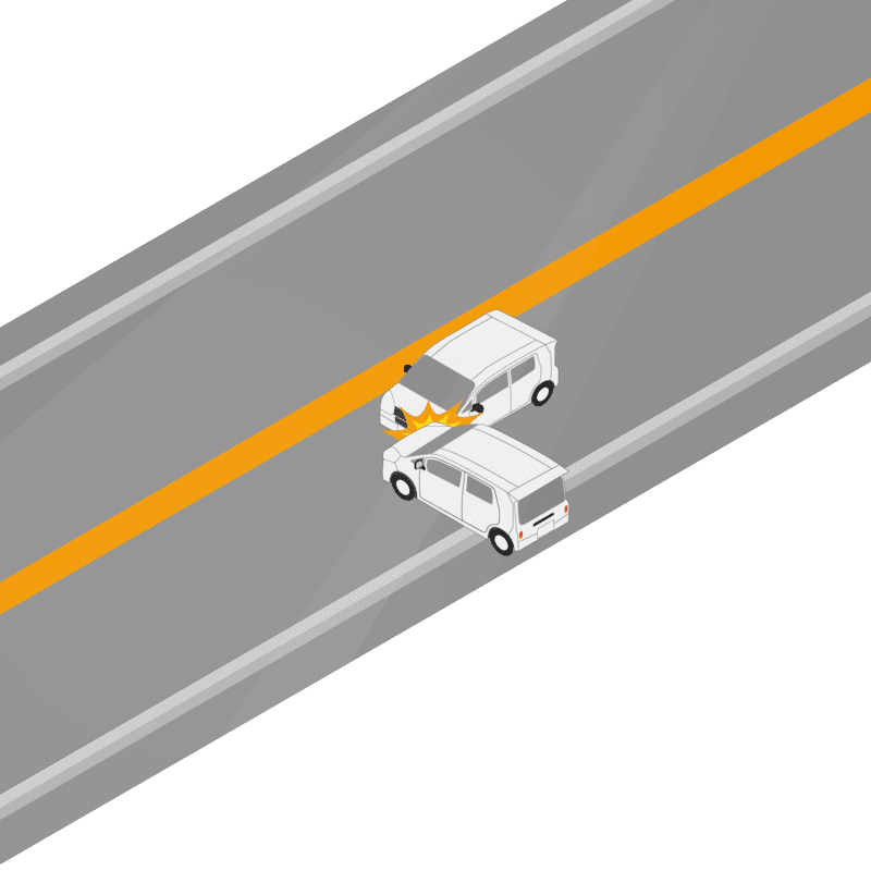 ・イラストに使用している各要素(車、背景、車、天候、信号、衝突地点など)は、代表的なイメージをイラスト化しており、色や形状等含め現実の事故の状況とは異なります。あくまで、事故のイメージとして参考までにご活用ください。