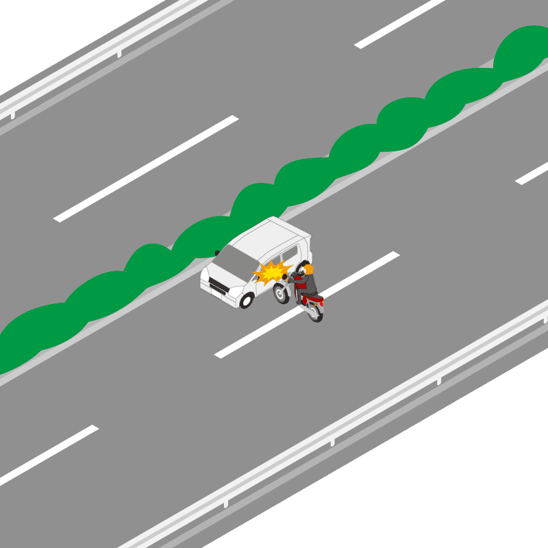 ・イラストに使用している各要素(車、背景、車、天候、信号、衝突地点など)は、代表的なイメージをイラスト化しており、色や形状等含め現実の事故の状況とは異なります。あくまで、事故のイメージとして参考までにご活用ください。