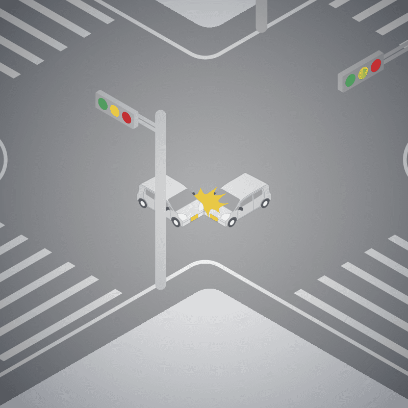 ・イラストに使用している各要素(車、背景、車、天候、信号、衝突地点など)は、代表的なイメージをイラスト化しており、色や形状等含め現実の事故の状況とは異なります。あくまで、事故のイメージとして参考までにご活用ください。