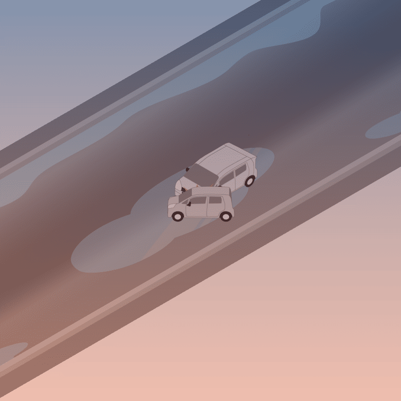 ・イラストに使用している各要素(車、背景、車、天候、信号、衝突地点など)は、代表的なイメージをイラスト化しており、色や形状等含め現実の事故の状況とは異なります。あくまで、事故のイメージとして参考までにご活用ください。