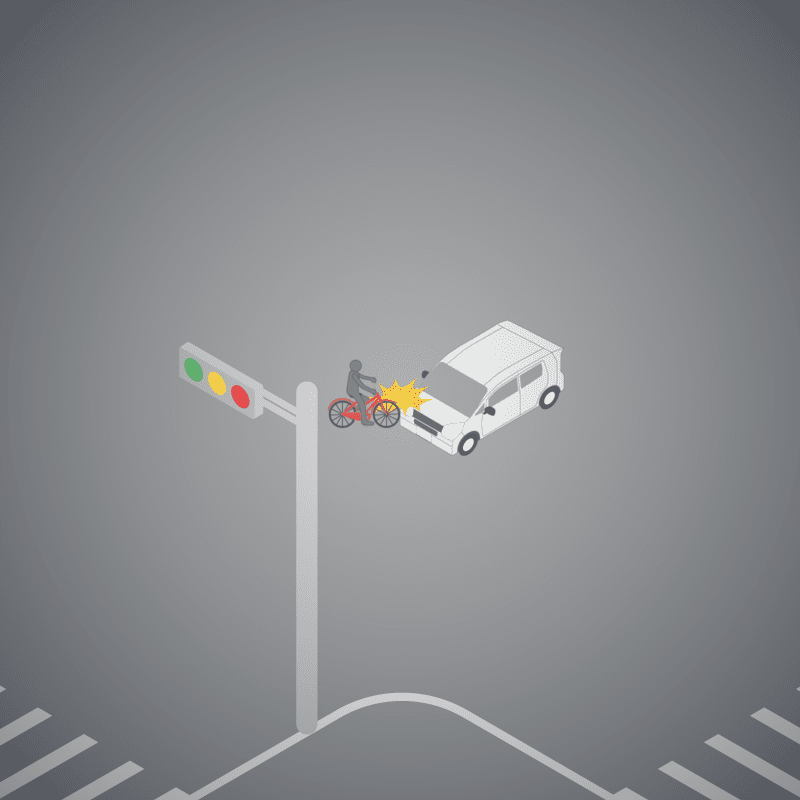 ・イラストに使用している各要素(車、背景、車、天候、信号、衝突地点など)は、代表的なイメージをイラスト化しており、色や形状等含め現実の事故の状況とは異なります。あくまで、事故のイメージとして参考までにご活用ください。