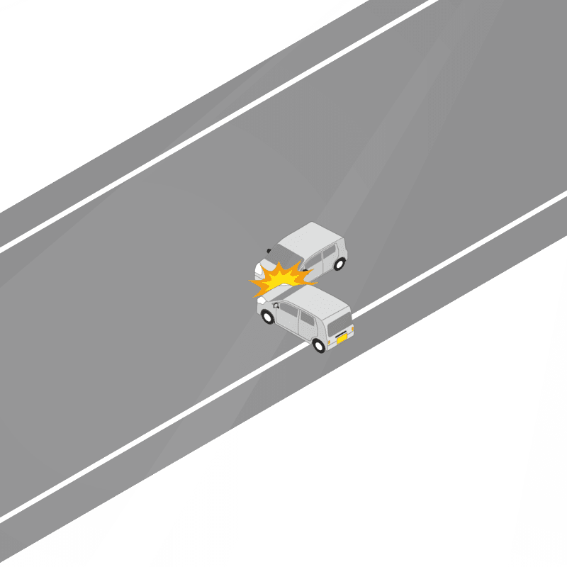・イラストに使用している各要素(車、背景、車、天候、信号、衝突地点など)は、代表的なイメージをイラスト化しており、色や形状等含め現実の事故の状況とは異なります。あくまで、事故のイメージとして参考までにご活用ください。