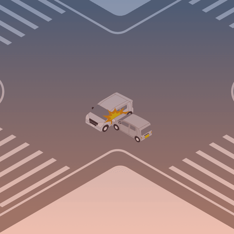 ・イラストに使用している各要素(車、背景、車、天候、信号、衝突地点など)は、代表的なイメージをイラスト化しており、色や形状等含め現実の事故の状況とは異なります。あくまで、事故のイメージとして参考までにご活用ください。