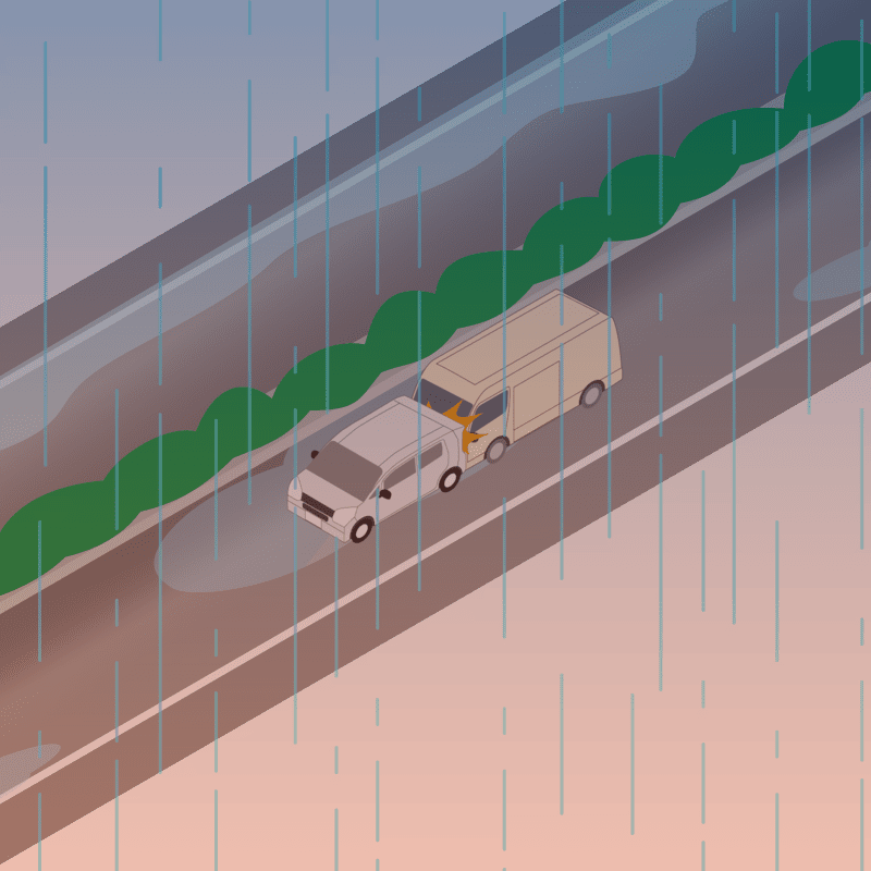 ・イラストに使用している各要素(車、背景、車、天候、信号、衝突地点など)は、代表的なイメージをイラスト化しており、色や形状等含め現実の事故の状況とは異なります。あくまで、事故のイメージとして参考までにご活用ください。
