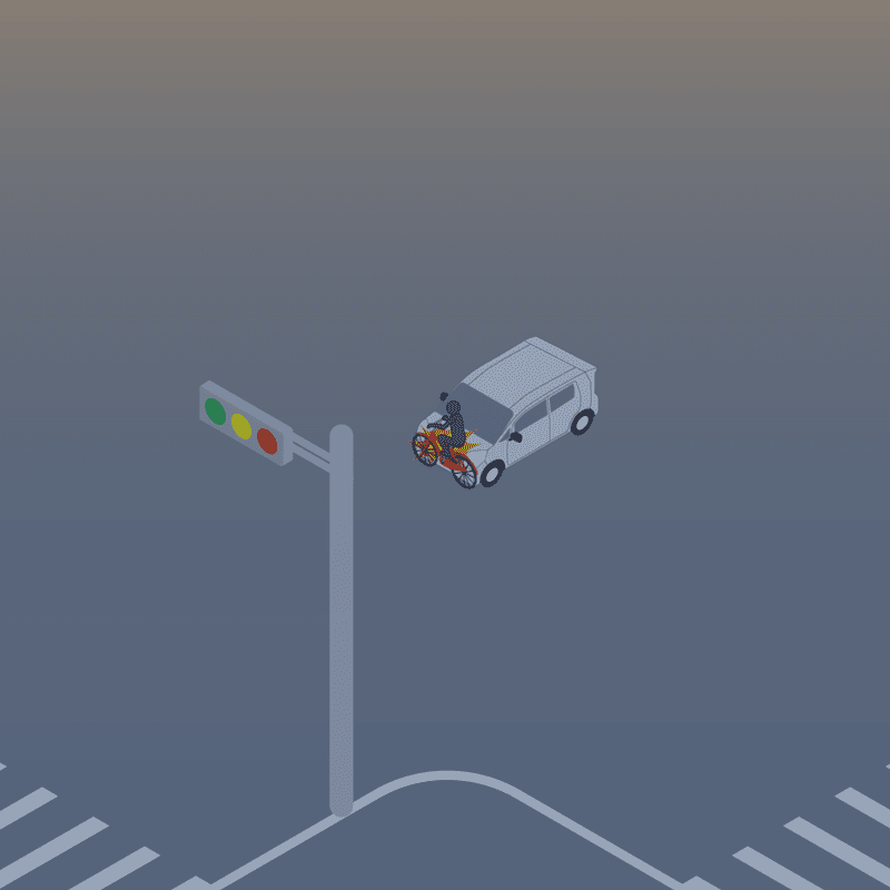 ・イラストに使用している各要素(車、背景、車、天候、信号、衝突地点など)は、代表的なイメージをイラスト化しており、色や形状等含め現実の事故の状況とは異なります。あくまで、事故のイメージとして参考までにご活用ください。