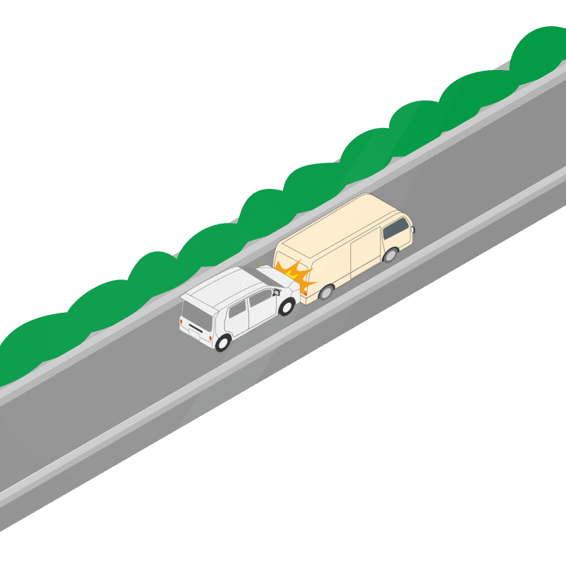 ・イラストに使用している各要素(車、背景、車、天候、信号、衝突地点など)は、代表的なイメージをイラスト化しており、色や形状等含め現実の事故の状況とは異なります。あくまで、事故のイメージとして参考までにご活用ください。