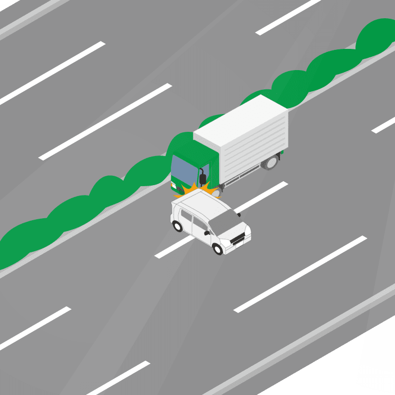 ・イラストに使用している各要素(車、背景、車、天候、信号、衝突地点など)は、代表的なイメージをイラスト化しており、色や形状等含め現実の事故の状況とは異なります。あくまで、事故のイメージとして参考までにご活用ください。