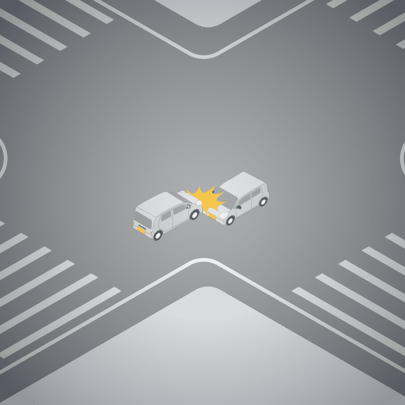 ・イラストに使用している各要素(車、背景、車、天候、信号、衝突地点など)は、代表的なイメージをイラスト化しており、色や形状等含め現実の事故の状況とは異なります。あくまで、事故のイメージとして参考までにご活用ください。