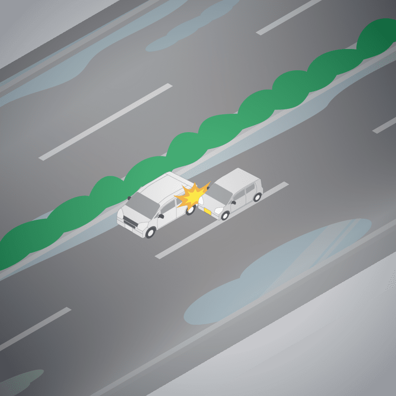 ・イラストに使用している各要素(車、背景、車、天候、信号、衝突地点など)は、代表的なイメージをイラスト化しており、色や形状等含め現実の事故の状況とは異なります。あくまで、事故のイメージとして参考までにご活用ください。