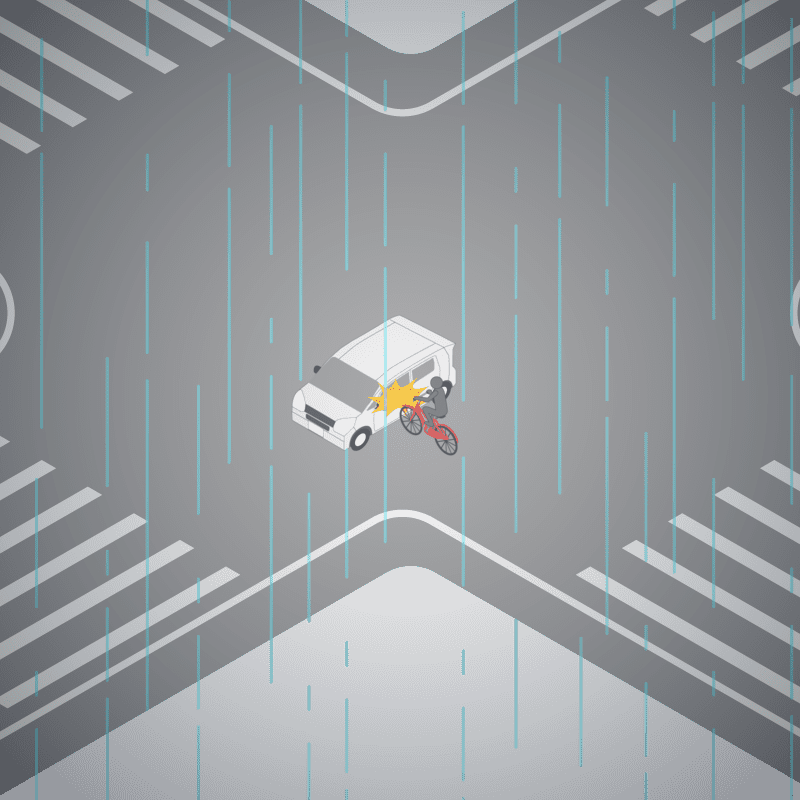 ・イラストに使用している各要素(車、背景、車、天候、信号、衝突地点など)は、代表的なイメージをイラスト化しており、色や形状等含め現実の事故の状況とは異なります。あくまで、事故のイメージとして参考までにご活用ください。