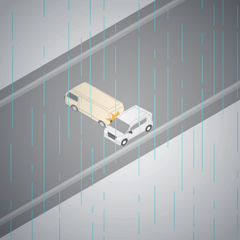 ・イラストに使用している各要素(車、背景、車、天候、信号、衝突地点など)は、代表的なイメージをイラスト化しており、色や形状等含め現実の事故の状況とは異なります。あくまで、事故のイメージとして参考までにご活用ください。
